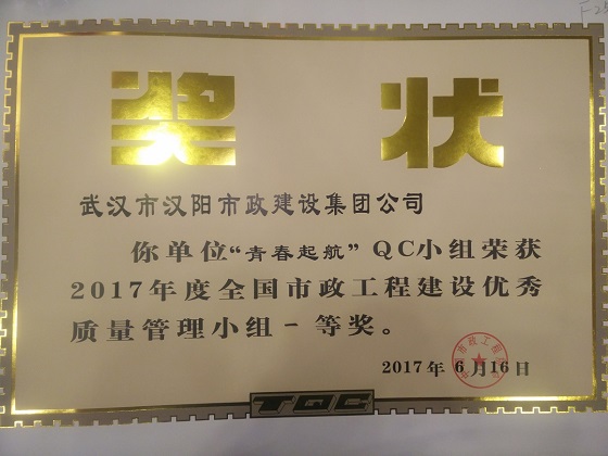 6月19日—21日,中國(guó)市政工程協(xié)會(huì)舉辦的2017年度全國(guó)市政工程優(yōu)秀QC小組成果發(fā)布總結(jié)表彰大會(huì)在四川成都舉行,經(jīng)過近三個(gè)月的報(bào)名與比賽、層層篩選和精中選優(yōu)后,來(lái)自武漢市漢陽(yáng)市政建設(shè)集團(tuán)公司的“青春起航”和“新起點(diǎn)”的《鎖口鋼管樁-新型基坑圍護(hù)結(jié)構(gòu)》和《提高SMW工法樁型鋼插入合格率》兩個(gè)QC小成果從全國(guó)23個(gè)省市的470個(gè)QC成果中脫穎而出,分別喜獲優(yōu)秀質(zhì)量管理小組一等獎(jiǎng)和先進(jìn)質(zhì)量管理小組的稱號(hào)。