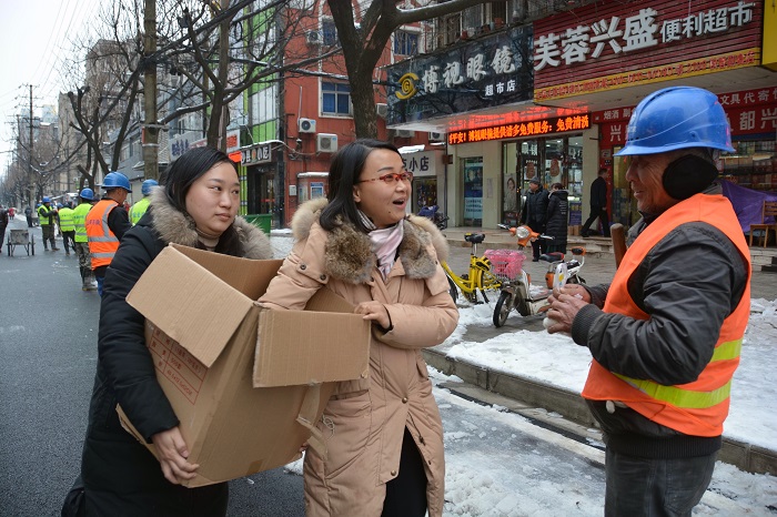 指針來到下午14時,鐘鑫市政“鐵軍”在公司領(lǐng)導(dǎo)的帶領(lǐng)下,搶險隊伍馬不停蹄地來到了國博大道。勘探完現(xiàn)場之后立即做出工作部署,將全體人員和機械按照路段劃分為三個路段進(jìn)行除雪破冰。下午的國博大道,寒風(fēng)凜冽,氣溫格外寒冷。好在鐘鑫公司的女同志們不顧嚴(yán)寒,精心準(zhǔn)備了充足的姜湯和熱騰騰的包子,為饑寒交迫的搶險隊伍送來了熱飲和食物,姜湯驅(qū)除寒氣,食物更暖人心,隊伍在下午18時順利完成了清掃任務(wù)。期間,方紫微帶領(lǐng)部分人員火速馳援馬滄湖路進(jìn)行路面清掃,擼起袖子和大家伙兒一起干!清掃完畢的馬滄湖路煥然一新。