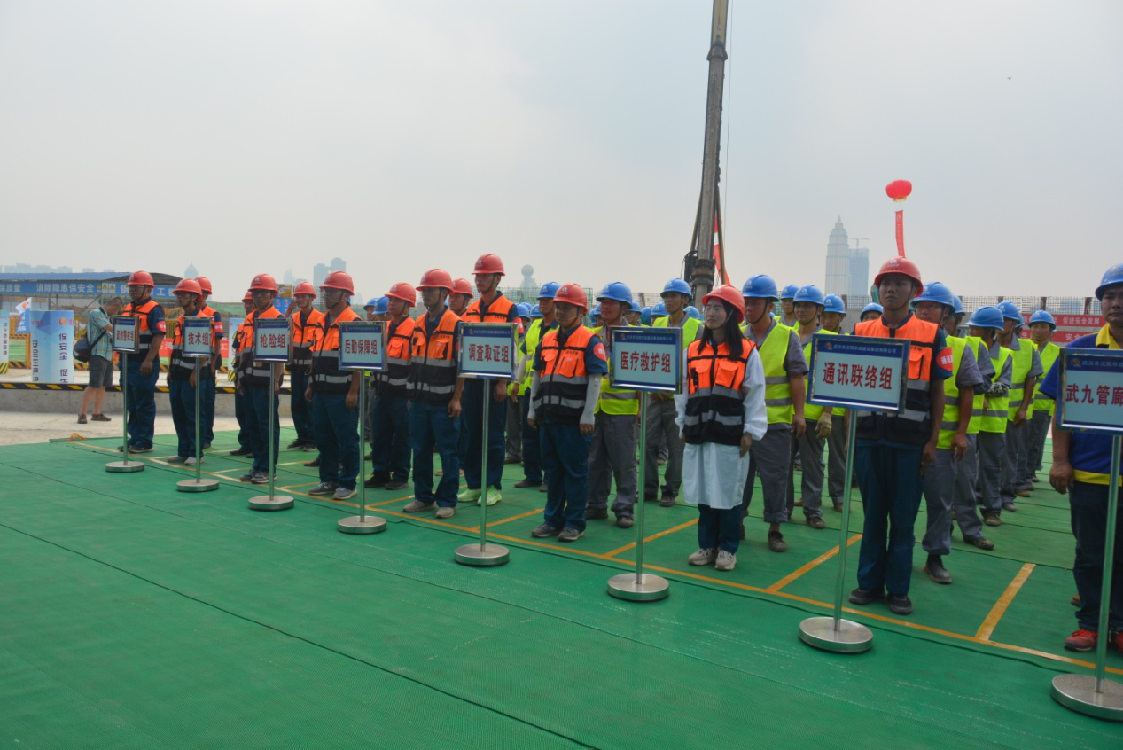 為應(yīng)對(duì)防汛突發(fā)事件,減少事故災(zāi)害損失,提高防汛搶險(xiǎn)應(yīng)急處置能力,快速、高效、有序地實(shí)施搶險(xiǎn)救援工作,為實(shí)戰(zhàn)搶險(xiǎn)奠定基礎(chǔ),6月26日15時(shí),武漢市漢陽市政建設(shè)集團(tuán)有限公司月亮灣城市陽臺(tái)工程(一期)項(xiàng)目在項(xiàng)目現(xiàn)場(chǎng)開展了2019年防汛搶險(xiǎn)應(yīng)急演練活動(dòng)。武漢市水務(wù)局、武昌區(qū)水務(wù)局、青山區(qū)水務(wù)局、武漢市城投集團(tuán)、鐵投公司、監(jiān)理公司以及漢陽市政集團(tuán)領(lǐng)導(dǎo)出席了本次活動(dòng)。