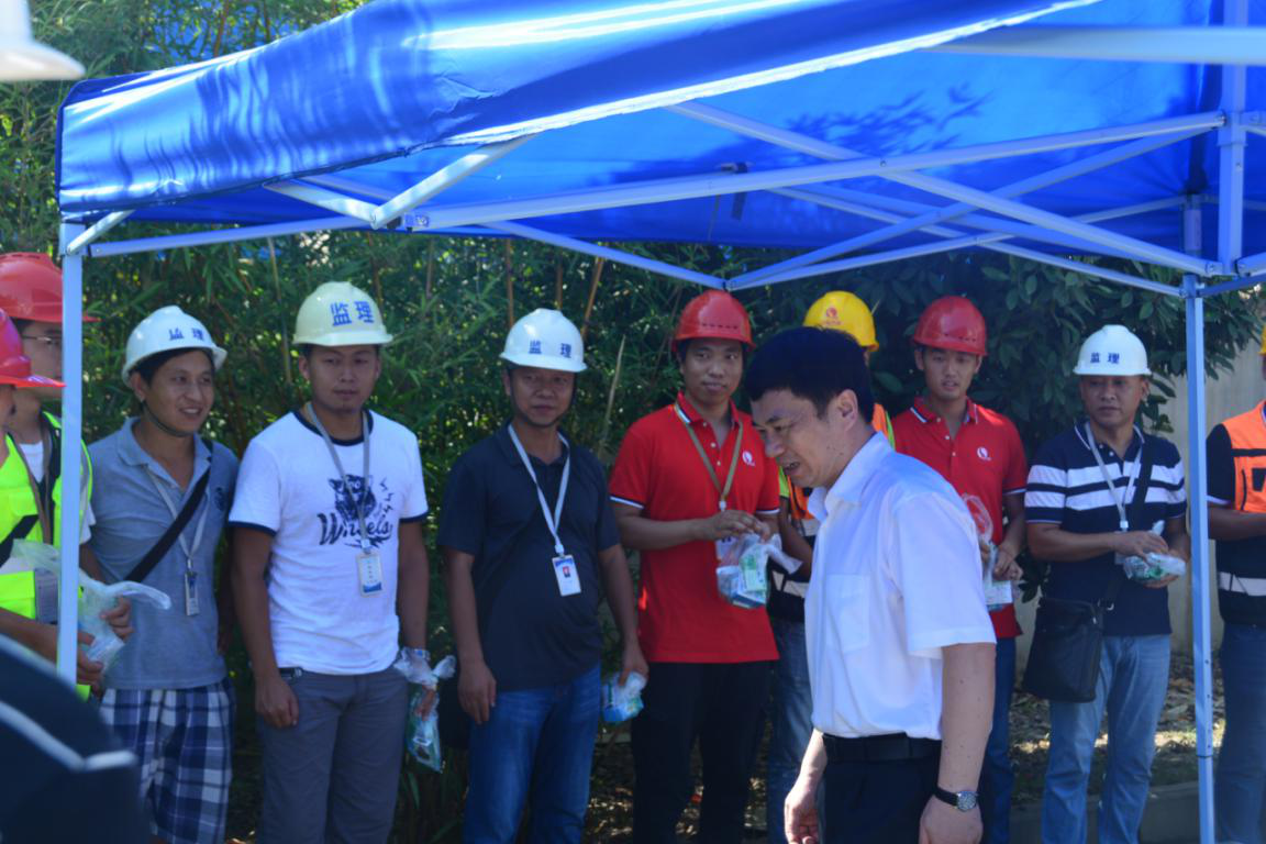 2019年7月31日上午,漢陽區(qū)委書記馬澤江,區(qū)委常委、區(qū)委辦主任郭笑撰,區(qū)人大常委會副主任李福杰,區(qū)政府副區(qū)長彭焚,區(qū)政協(xié)副主席江建華等一行來到漢陽市政鸚鵡大道南段改造工程項(xiàng)目對奮戰(zhàn)在一線的施工人員進(jìn)行了慰問,區(qū)建設(shè)局局長胡紅勝,漢陽市政黨委書記、董事長嚴(yán)悌文,總經(jīng)理虞志鵬等陪同。