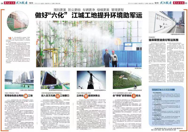 10月24日,楚天都市報“武漢城建”專欄刊登了“圍擋更美 防塵更細(xì) 車輛更凈 綠植更美 管理更智——做好六化 江城工地提升環(huán)境助力軍運”系列報道,漢陽市政月亮灣城市陽臺“投入百萬元擦亮工地窗口”,向廣大武漢城建單位、市民展示了漢陽市政在助力軍運、提升環(huán)境做出的重視和努力,同時也傳達了漢陽市政“綠色、智慧、安全、文明”的施工理念。