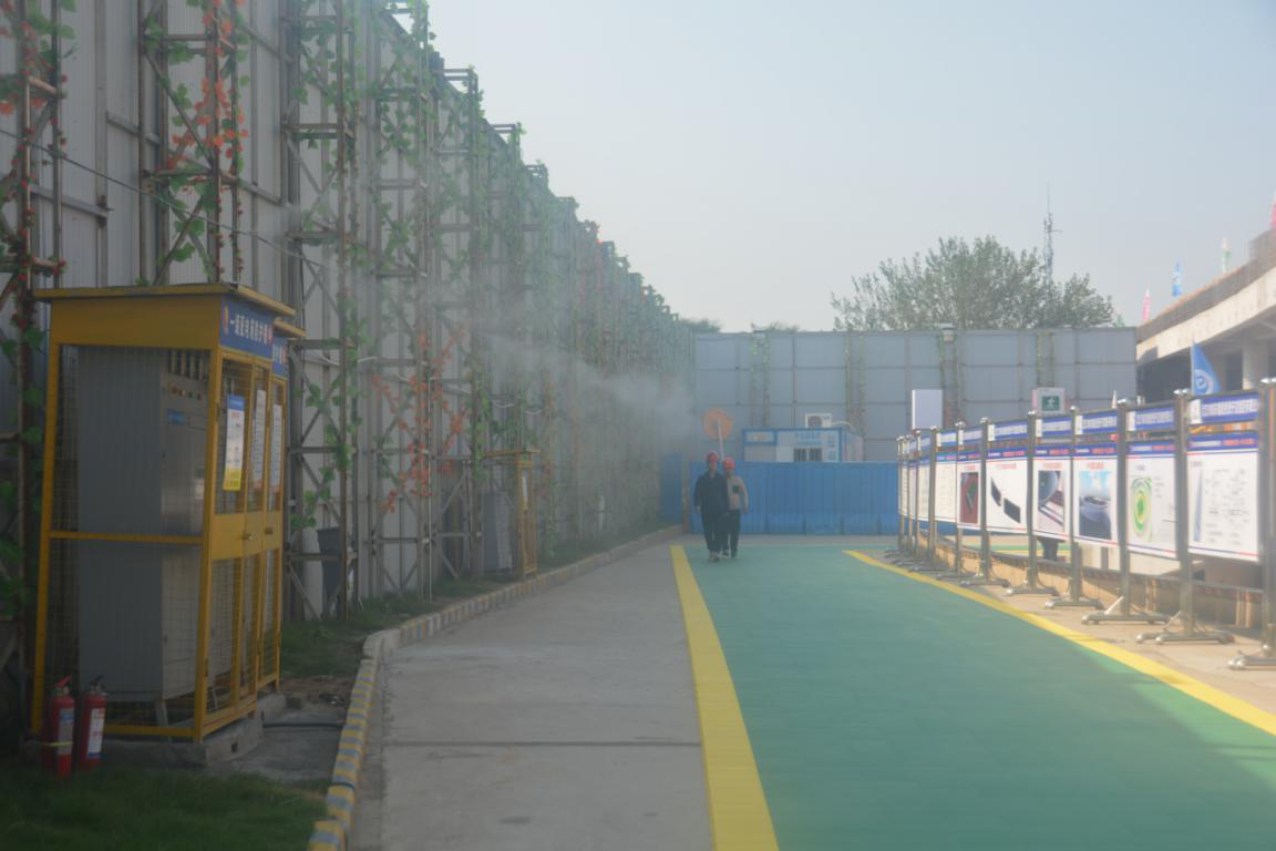為達到智能管理目標(biāo),項目投入約35萬元,實現(xiàn)現(xiàn)場降塵、降噪、報警智能化,具體措施是沿著圍擋布設(shè)噴淋系統(tǒng),保證施工便道的清潔干凈,無揚塵。場內(nèi)布設(shè)的環(huán)境監(jiān)控監(jiān)測系統(tǒng),和現(xiàn)場的噴淋及霧炮機等設(shè)備相連,管理人員通過手機APP軟件可實現(xiàn)智能噴淋,一旦現(xiàn)場揚塵出現(xiàn)預(yù)警,現(xiàn)場自動噴淋設(shè)施將自動降塵。