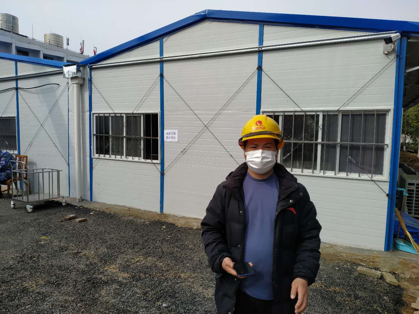 “最讓我難忘的就是在火神山,同伴們團(tuán)結(jié)一心、眾志成城,沒有情緒,不發(fā)牢騷,有什么任務(wù)都是第一時間馬上完成,有什么困難大家都積極幫忙。”在這樣的氛圍中,周江雄感受到了集體擰成一捆繩的力量,他在現(xiàn)場負(fù)責(zé)施工以及聯(lián)系材料,每天只休四、五個小時,起床的第一件事就是詢問工程進(jìn)度,然后進(jìn)駐施工現(xiàn)場。連續(xù)的奮戰(zhàn)使他十分疲憊,2月7日的一場雨打斷了他的抗“疫”征程,在雨中堅(jiān)持施工了一天的他,沒能撐住身體,感到身體發(fā)軟后無法再繼續(xù)奮戰(zhàn),回家休息后的他依然十分牽掛現(xiàn)場情況,當(dāng)身體慢慢好轉(zhuǎn),他又選擇繼續(xù)向前,然而新洲更加嚴(yán)格的管控措施阻擋了他前進(jìn)的腳步,“沒能繼續(xù)和同事肩并肩戰(zhàn)斗,我有些遺憾,但我的心一直在他們身邊,與他們戰(zhàn)斗,繼續(xù)加油,完成使命”,這是他沒能在同事身邊,發(fā)出的最振奮的鼓舞。