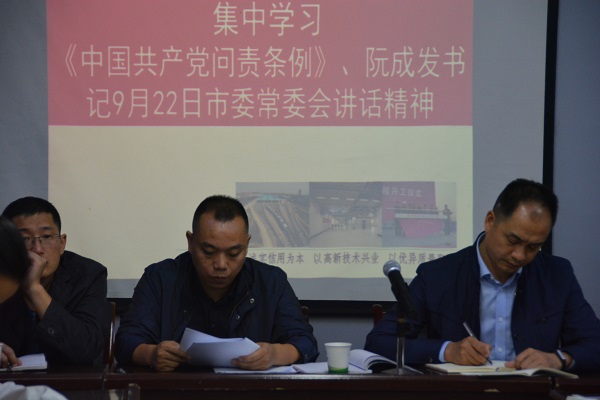 會(huì)上,黨支部書記涂軼銘同志為大家講黨課,帶領(lǐng)大家一起學(xué)習(xí)《中國(guó)共產(chǎn)黨問(wèn)責(zé)條例》和阮成發(fā)書記9月22日市委常委會(huì)講話精神。通過(guò)學(xué)習(xí),全公司黨員深刻地體會(huì)到,作為黨員干部,權(quán)力就是責(zé)任,責(zé)任就是擔(dān)當(dāng),擔(dān)當(dāng)就是為黨分憂、為黨盡職、為民盡責(zé)。作為黨員干部,要悟透精神實(shí)質(zhì),自覺(jué)加強(qiáng)黨性修養(yǎng),增強(qiáng)法紀(jì)觀念,筑牢思想防線,把“不逾矩”刻在靈魂深處。