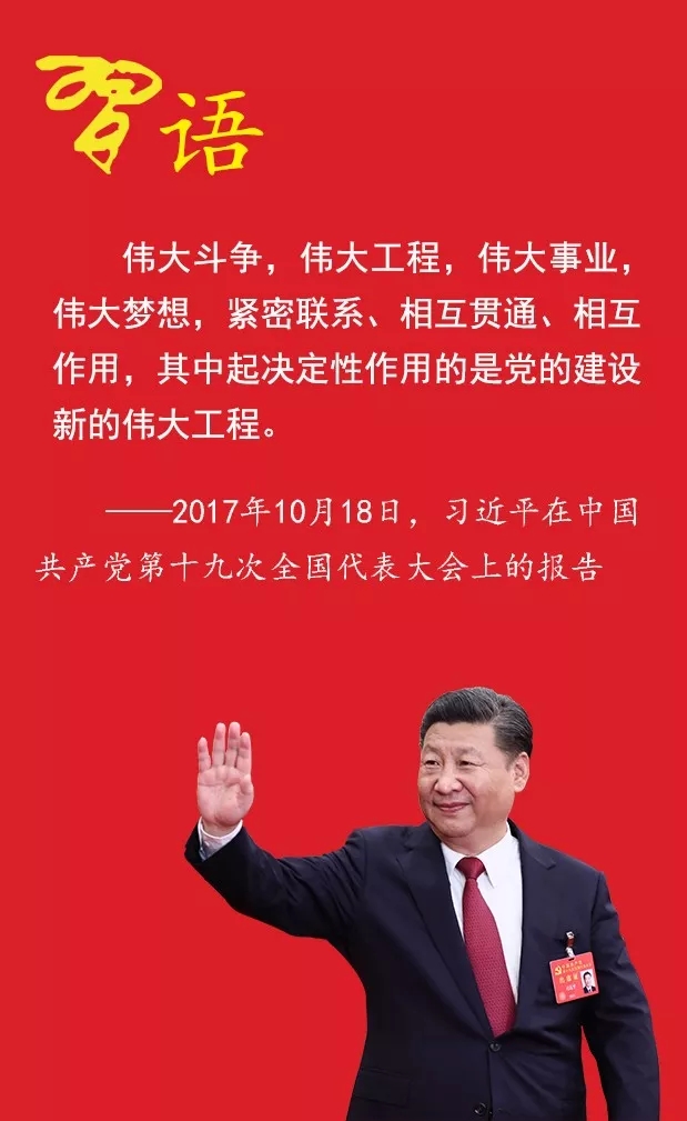 習近平在十九大報告中指出,“偉大斗爭,偉大工程,偉大事業(yè),偉大夢想,緊密聯系、相互貫通、相互作用,其中起決定性作用的是黨的建設新的偉大工程”。