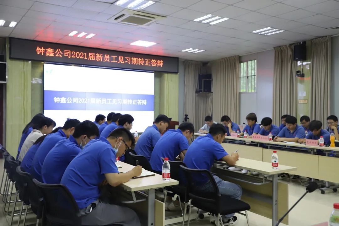 為更好檢驗新員工入職一年來的工作表現(xiàn)及進步,為公司提供發(fā)現(xiàn)人才、培養(yǎng)人才,選拔人才的平臺,鐘鑫公司于6月22日——6月23日進行為期兩天的新員工見習(xí)轉(zhuǎn)正答辯考核,公司黨支部書記、董事長陳俊俊,黨支部副書記、總經(jīng)理盧永紅,黨支部副書記李艷娥,副總經(jīng)理張平出席本次會議,業(yè)務(wù)部門及項目代表擔(dān)任評委,來自后勤及項目一線的24名新員工參與此次答辯。